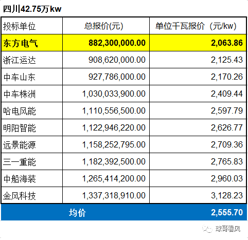 就在前幾天,華能311萬千瓦集采招標(biāo)中標(biāo)人公示,結(jié)果為出意外,都是意料之中的中標(biāo)人,東方電氣、金風(fēng)科技、遠(yuǎn)景能源及明陽智能分享了這一波大單。中標(biāo)人(黃色標(biāo)注)都是最低價前三名,低價中標(biāo)是必然。當(dāng)然我們行業(yè)要有一個共識:低價中標(biāo)是必然,高價中標(biāo)只是個別,否則失去了招標(biāo)的公平競爭意義!
