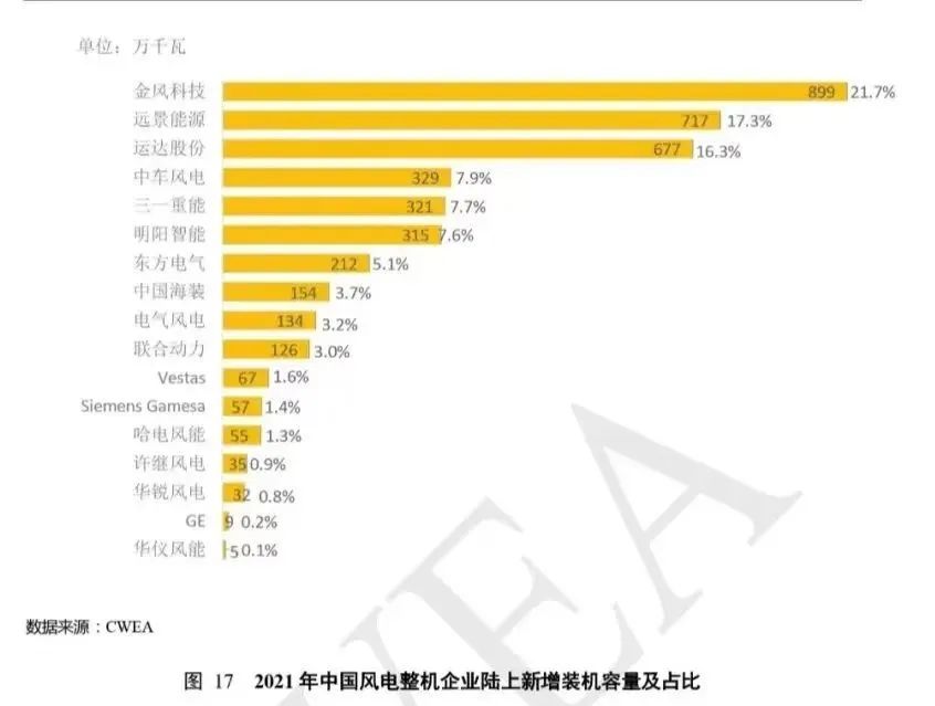 近日,CWEA正式發(fā)布了《2021年中國風電吊裝容量統(tǒng)計簡報》。據(jù)統(tǒng)計,2021年中國風電新增裝機總量為55.92GW,其中陸上風電裝機為41.44GW。在今年的風電整機商排名中,三一重能以3.21GW新增裝機量躋身陸上前五。這是三一重能歷史首次殺入陸上前五,實現(xiàn)一次質(zhì)的飛躍。