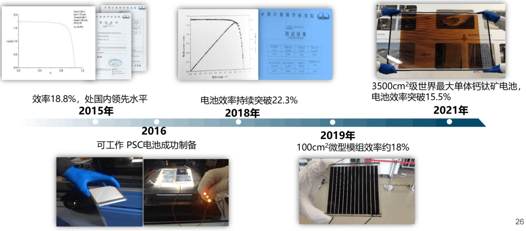 2021年極電光能20.1%@64cm²鈣鈦礦組件穩(wěn)態(tài)效率被《Solar Cell efficiency Tables》認(rèn)定為鈣鈦礦光伏組件世界最高效率,被Martin Green教授評價為“里程碑”式的成果。近日,300cm²的大組件效率經(jīng)中國計量科學(xué)研究院認(rèn)證達(dá)到18.2%,創(chuàng)造了新的世界紀(jì)錄。
