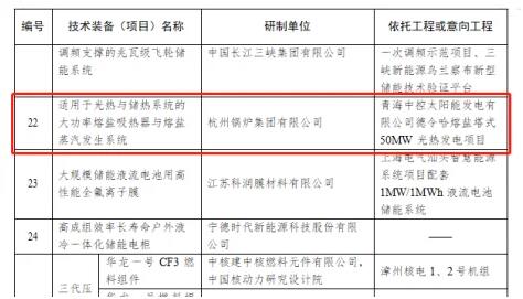 近日,國家能源局正式公布2021年度能源領域首臺(套)重大技術裝備(項目)名單,西子潔能(原杭鍋股份)“適用于光熱與儲熱系統的大功率熔鹽吸熱器與熔鹽蒸汽發生系統”成功入選。