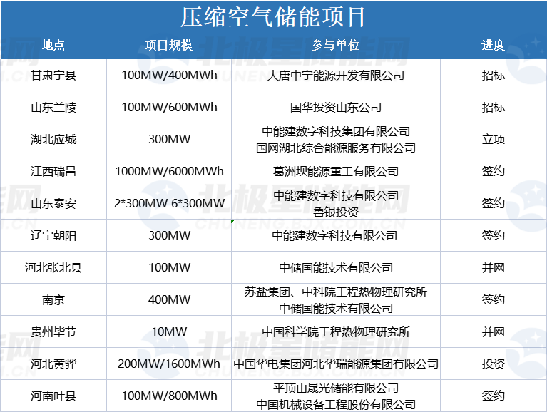 壓縮空氣儲(chǔ)能項(xiàng)目匯總