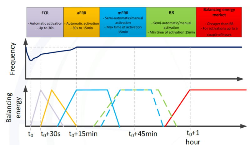 另一個是頻率控制服務FCR,PCR一次調(diào)頻可以看作是輔助服務階梯的第一級。FCR中的資產(chǎn)在接收到電網(wǎng)信號后 30 秒內(nèi)對電網(wǎng)上的短期頻率不平衡作出反應,(二級調(diào)頻目標是覆蓋15 分鐘)。