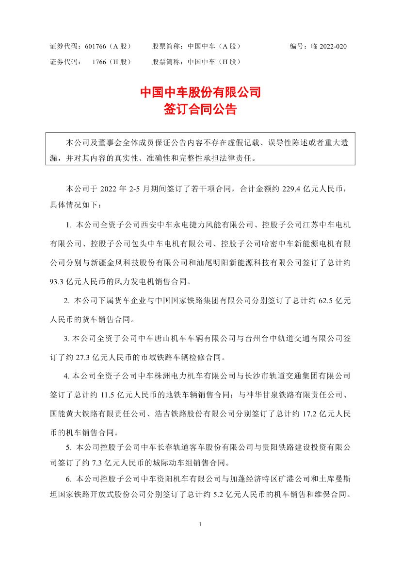 6月7日,中國中車發(fā)布簽訂合同公告,根據公告:中國中車集團全資子公司西安中車永電捷力風能有限公司、控股子公司江蘇中車電機有限公司、控股子公司包頭中車電機有限公司、控股子公司哈密中車新能源電機有限公司分別與金風科技和汕尾明陽新能源科技有限公司簽訂了總計約93.3 億元人民幣的風力發(fā)電機銷售合同。全資子公司山東中車風電有限公司與陜西中洋建設工程有限公司和深能北方(蘇尼特左旗)能源開發(fā)有限公司分別簽訂了總計約 5.1億元人民幣的風力發(fā)電機銷售合同。金額共計98.4億元。