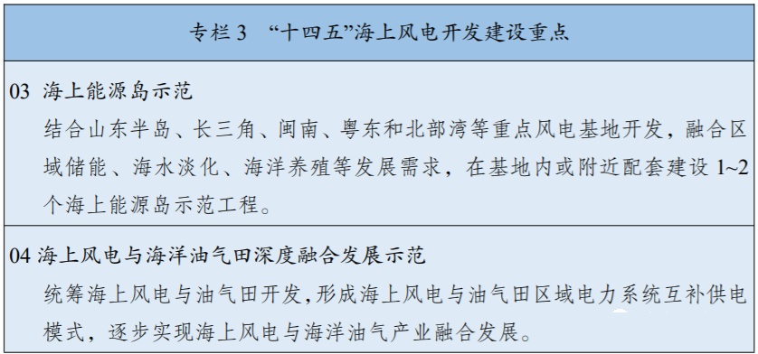 2022年6月1日,國(guó)家發(fā)改委等九部門聯(lián)合下發(fā)《關(guān)于印發(fā)“十四五”可再生能源發(fā)展規(guī)劃的通知》,提出有序推進(jìn)海上風(fēng)電基地建設(shè)。開展省級(jí)海上風(fēng)電規(guī)劃制修訂,同步開展規(guī)劃環(huán)評(píng),優(yōu)化近海海上風(fēng)電布局,鼓勵(lì)地方政府出臺(tái)支持政策,積極推動(dòng)近海海上風(fēng)電規(guī)模化發(fā)展。開展深遠(yuǎn)海海上風(fēng)電規(guī)劃,完善深遠(yuǎn)海海上風(fēng)電開發(fā)建設(shè)管理,推動(dòng)深遠(yuǎn)海海上風(fēng)電技術(shù)創(chuàng)新和示范應(yīng)用,探索集中送出和集中運(yùn)維模式,積極推進(jìn)深遠(yuǎn)海海上風(fēng)電降本增效,開展深遠(yuǎn)海海上風(fēng)電平價(jià)示范。探索推進(jìn)具有海上能源資源供給轉(zhuǎn)換樞紐特征的海上能源島建設(shè)示范,建設(shè)海洋能、儲(chǔ)能、制氫、海水淡化等多種能源資源轉(zhuǎn)換利用一體化設(shè)施。加快推動(dòng)海上風(fēng)電集群化開發(fā),重點(diǎn)建設(shè)山東半島、長(zhǎng)三角、閩南、粵東和北部灣五大海上風(fēng)電基地。