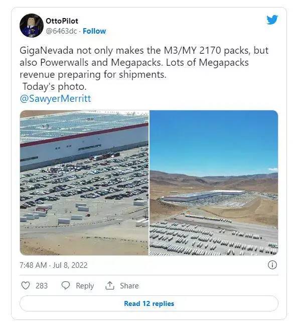 一位名叫OttoPilot的Twitter用戶操作無人機飛過內華達州Gigafactory,在工廠外發現了數量驚人的特斯拉Megapack。