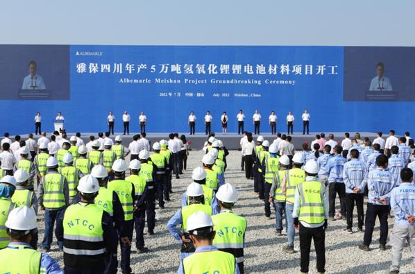 2022年7月8日上午,雅保公司年產5萬噸氫氧化鋰鋰電池材料項目于四川省眉山市彭山經濟開發區舉行了開工儀式。四川省眉山市委書記胡元坤現場宣布項目正式開工,眉山市委副書記、市長黃河出席開工儀式,雅保鋰事業部總裁Eric Norris視頻致辭,雅保中國區總裁徐旸致辭,雅保中國重大資本項目副總裁黃松濤出席。