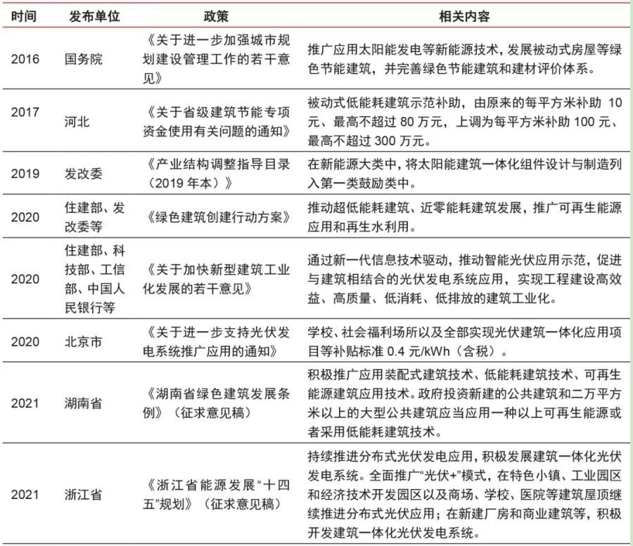 BIPV是打造綠色建筑最有效的解決方案方式之一,符合國家發展綠色建筑的趨勢,國家層面出臺了一系列補貼政策推動其發展。
