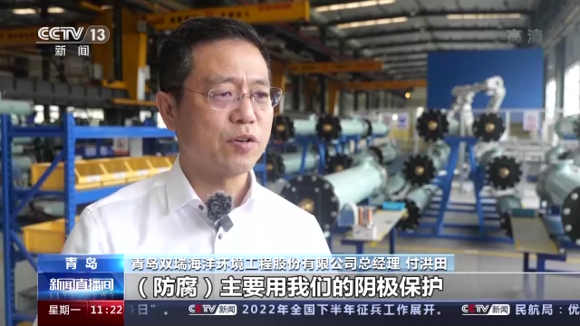 青島雙瑞海洋環境工程股份有限公司總經理 付洪田:海上風電主要是風機,裝機的水面以下,(防腐)主要用我們的陰極保護,我們的量到現在比去年翻了三倍。