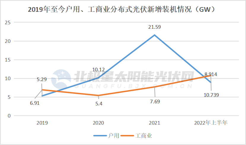 事實上,從今年第一季度開始,分布式光伏新增裝機(jī)8.87GW中,工商業(yè)遠(yuǎn)超戶用,占據(jù)6.32GW,已接近2021年全年工商業(yè)分布式光伏的“成績單”。