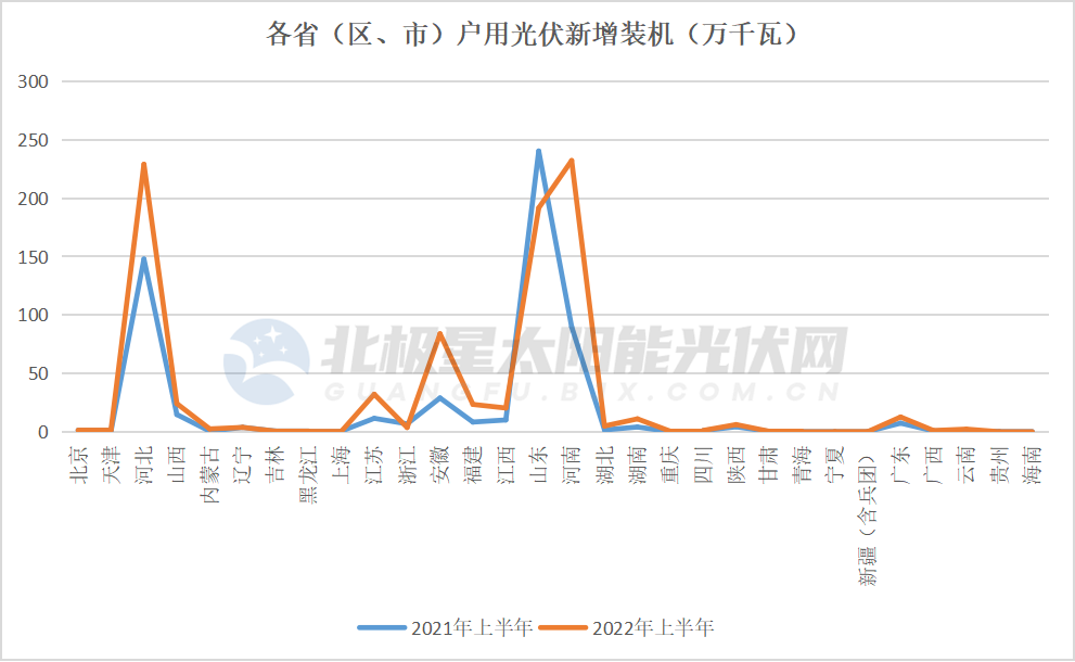 而今年上半年,戶用光伏新增裝機(jī)8.914GW,同比實現(xiàn)增長51%。然而,變化更令市場關(guān)注:一向霸屏的山東市場交出榜首位置,此外,浙江、上海、北京市場的戶用新增裝機(jī)均同比下降。