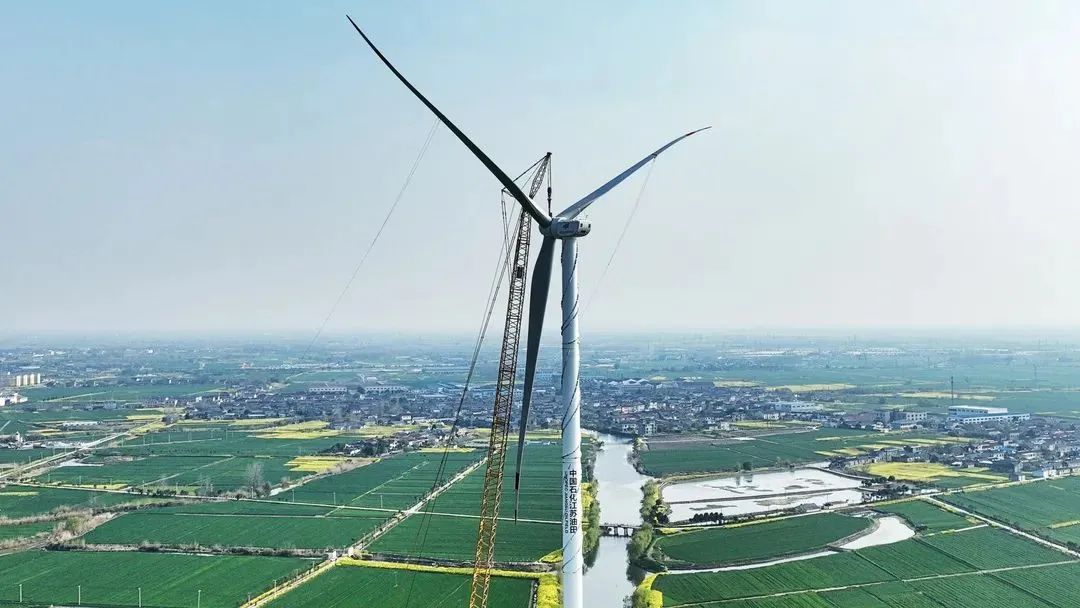 2022年4月18日,中石化江蘇油田分散式項目風(fēng)電機(jī)組完成并網(wǎng),這是中石化江蘇油田分公司的首臺陸上風(fēng)力發(fā)電機(jī)組。
