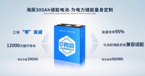 通過技術創新,海辰儲能推出的首款300Ah電力儲能專用電池,實現前三年"零"衰減(每天滿充滿放一次計),循環壽命可達12000次,能量效率達95%。該款產品與現有280Ah儲能電池尺寸相同,可兼容適配當下儲能系統,降低儲能系統建設成本。實測數據顯示,前1000次循環,該款電池能量衰減率≤1%(滿充滿放,相對于初始值)。