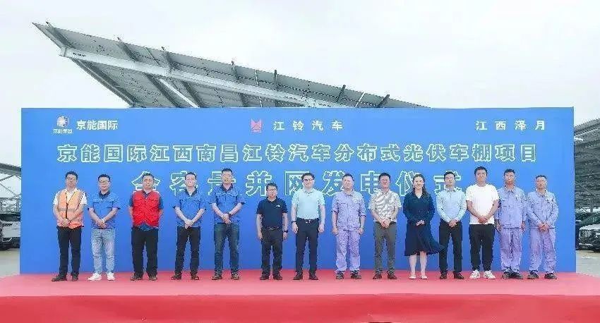 近日【光伏資訊】微信公眾號(PV-info)了解到,江鈴汽車與京能國際合作的63.05MW分布式光伏車棚項目全容量并網發電。江鈴汽車副總裁曾發發,京能國際華中分公司總經理鐘毅等出席并網發電儀式。