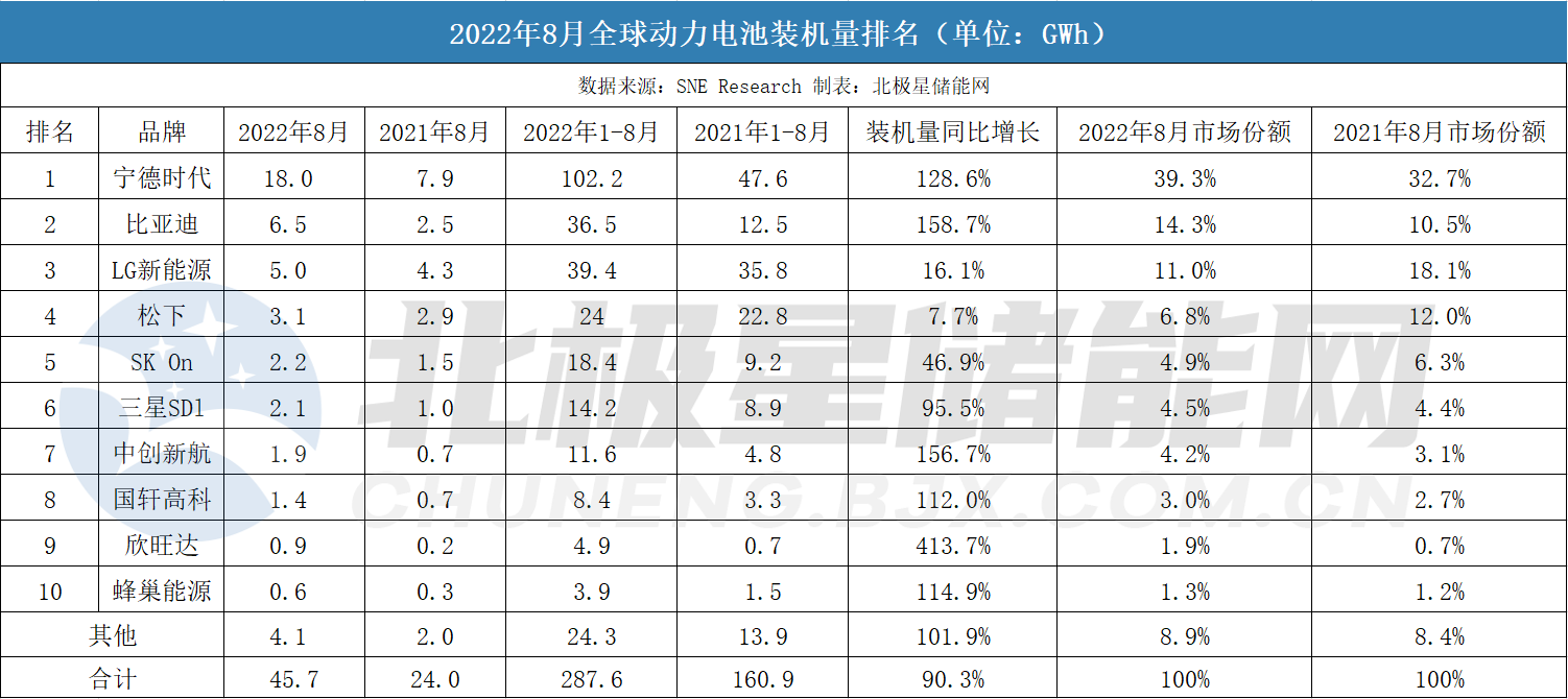 此外,還有4家中國企業(yè)躋身8月全球市場裝機量TOP10,分別是中創(chuàng)新航、國軒高科、欣旺達(dá)和蜂巢能源。