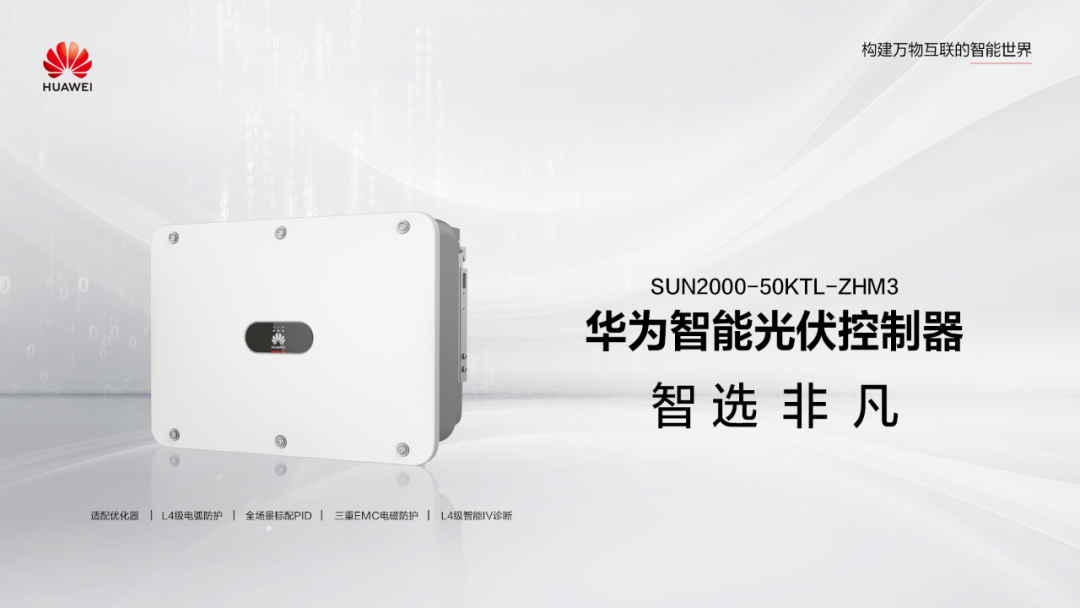 據光伏們了解,華為智能光伏“1+3”是以全新上市的SUN2000-50KTL-ZHM3(以下簡稱50KTL)三相逆變器為核心,適配智能組件控制器MERC-1100W/1300W-P(一拖二優化器),智能組串式儲能系統LUNA2000-200KWH-2H0(可與100kW PCS耦合)以及智能光伏云,解決工商業光伏全面推進面臨的諸多挑戰,滿足各類工商業場景需求,助力千行百業邁入綠色低碳新時代。