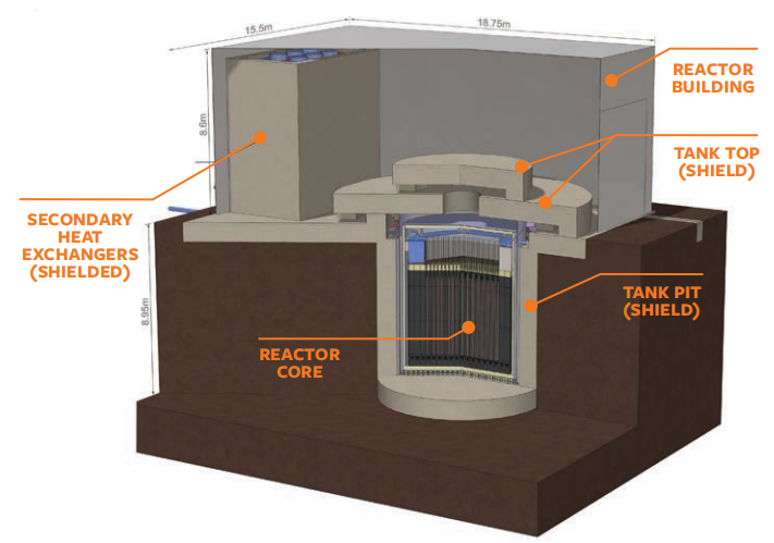 FLEX反應堆設計擴大了“固有安全”理念,堆芯是熱工流體“自然循環”、沒有運動部件的低壓系統;規模只是傳統核能的“核島”部分,與核監管相關的設施少;主冷卻劑出口溫度高達750℃,有潛力提高能源轉換效率,大大降低基建和運營成本;與電網儲備(Grid Reserve)耦合,成為外網可調度、輔助間歇性可再生能源系統的“調峰”容量。