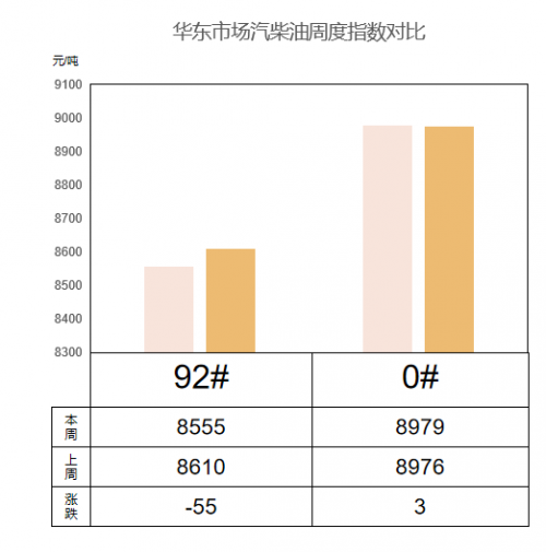 華東地區主營汽油價格穩中小跌,柴油價格維持堅挺。周內,華東市場92#汽油成交重心調整至8350-8800元/噸左右,較上周下跌50元/噸;柴油成交重心調整至8940-9040元/噸附近,較上周持平。原油成本面尚存支撐,但需求端仍受多點散發疫情沖擊,主營多采取和柴油搭售走量,銷售壓力提升;柴油資源供應尚未有效緩解,仍維持在限價附近銷售,市場整體成交一般。