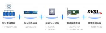 全棧全閃化設計:采用“CPU直通架構 + SCM持久內存 + NVMe SSD + 低時延RDMA網絡 + 端到端NVMe協議”五位硬核技術于一體,構建全棧全閃化分布式存儲硬件架構。