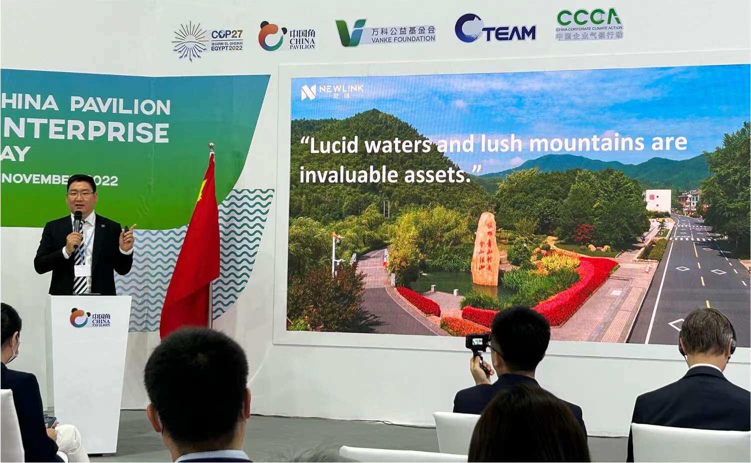 (能鏈創(chuàng)始人、CEO戴震在COP27大會(huì)上做主題演講介紹“兩山”理念)