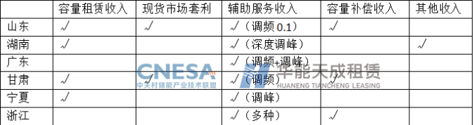 表1:山東、湖南、廣東、甘肅、寧夏和浙江六省份獨立儲能商業模式對比