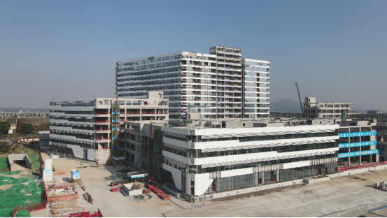 截至目前,該項目已完成約65%的外立面幕墻及巖棉板施工、約90%的屋面剛性層施工;消防、給排水、暖通、電氣等配套安裝工程也已完成約60%;電梯工程完成31臺直梯主體安裝、4臺正在安裝,預計年底前35臺直梯全部完成安裝。