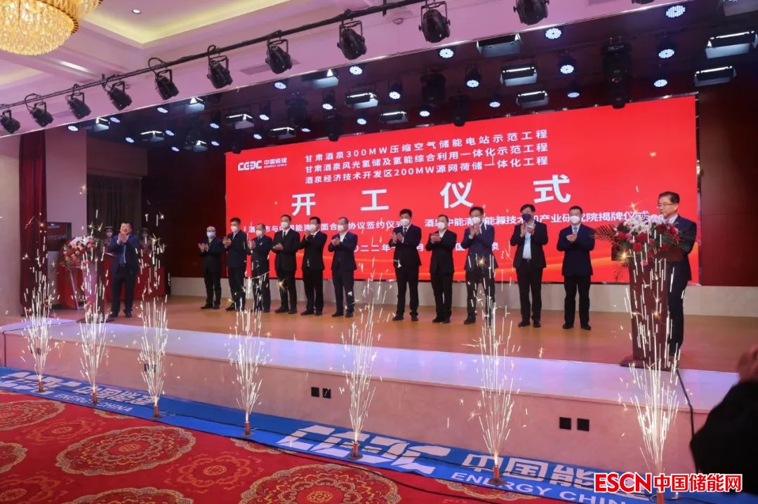 此次集中開工的項目普遍具有科技含量高、創新示范強、場景范圍廣等顯著特點,涵蓋壓縮空氣儲能、風光氫儲一體化以及源網荷儲一體化等領域,總裝機容量達2555兆瓦,分別為遼寧朝陽、甘肅酒泉300兆瓦壓縮空氣儲能電站示范工程,甘肅酒泉經開區20萬千瓦源網荷儲一體化項目,遼寧建平源網荷儲一體化與膨潤土資源綜合利用項目,甘肅酒泉風光氫儲及氫能綜合利用一體化示范工程。其中,遼寧朝陽、甘肅酒泉兩個300兆瓦壓縮空氣儲能電站示范項目采用中國能建壓縮空氣儲能電站系統解決方案,是全球首臺(套)300兆瓦人工硐室壓縮空氣儲能項目,破解了壓縮空氣儲能受地理條件制約的世界性難題,在技術路線、解決方案和產業生態均處于領先地位。