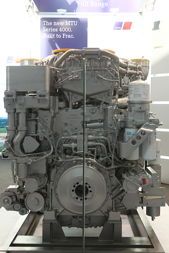 MTU 4000型發(fā)動機(jī)是我們最受歡迎的產(chǎn)品之一。自1996年以來,該系列發(fā)動機(jī)累計(jì)售出超過26,000臺。MTU4000型發(fā)動機(jī)在石油天然氣行業(yè)主要用于油井開發(fā)和增產(chǎn)的水力壓裂設(shè)備。使用該系列柴油發(fā)動機(jī)的壓裂設(shè)備可以以4臺到50臺組合完成壓裂蘊(yùn)含石油和天然氣的巖層。MTU 4000 T4型結(jié)合MTU自身具備的柴油科技、通過MTU第五代高壓共軌燃油噴射技術(shù)和兩級渦輪增壓器(具有可調(diào)高壓段以及廢氣循環(huán)系統(tǒng))、無需增加后處理和相關(guān)設(shè)置 ,就可以實(shí)現(xiàn)超低顆粒和氧化氮的排放。簡單來說,新一代MTU 4000型發(fā)動機(jī)僅用發(fā)動機(jī)本身設(shè)計(jì)性能就可以實(shí)現(xiàn)低污染物排放。應(yīng)用戶市場的要求,上一代MTU 4000型發(fā)動機(jī)依然會繼續(xù)生產(chǎn)銷售。