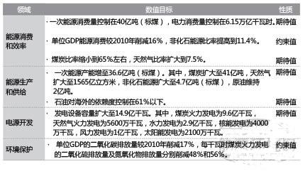 《能源發展“十二五”規劃》的主要政策目標