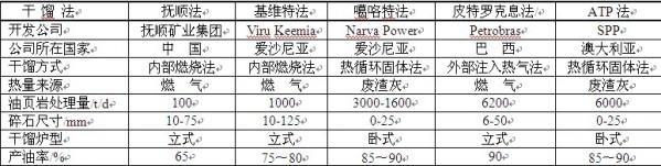說明:本表所列五種干餾法均在地面生產。產油率均采用費歇爾評價法。