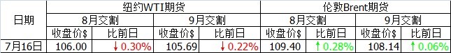 當(dāng)日好消息不斷。美元匯率下跌,支撐油價(jià)上行。6月美國(guó)礦業(yè)生產(chǎn)指數(shù)比前一月上漲0.3%,小幅超出市場(chǎng)預(yù)期。美國(guó)住宅建設(shè)行業(yè)協(xié)會(huì)(NAHB)公布的7月住宅建設(shè)指數(shù)達(dá)到7年來(lái)的最高值。美國(guó)能源信息署(IEA)將于周三公布的石油庫(kù)存預(yù)計(jì)將繼續(xù)減少。然而由于美國(guó)股市當(dāng)日行情走弱,WTI油價(jià)最終收跌。
