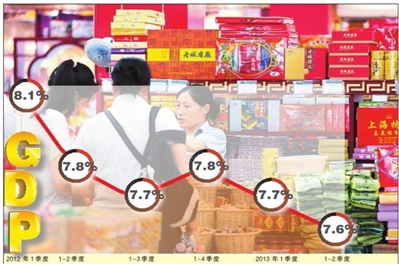 事實(shí)上,“十二五”規(guī)劃提出的年均經(jīng)濟(jì)增速預(yù)期目標(biāo)為7%,今年政府工作報(bào)告提出的全年經(jīng)濟(jì)增速預(yù)期目標(biāo)為7.5%,上半年增速仍在預(yù)期的合理空間。