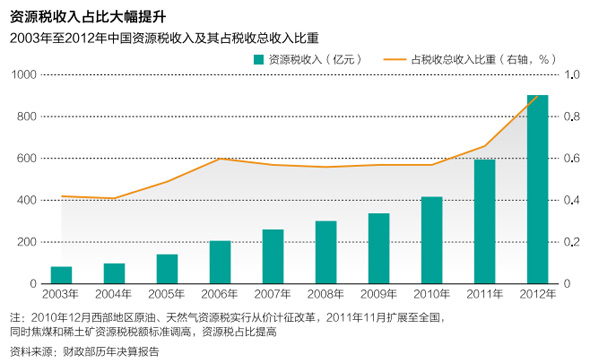 全面改革資源稅是“十二五”稅制改革的任務之一,全國人大、國務院和財稅部門均強調研究把煤炭等資源品目逐步納入從價定率計征范圍,并適當提高稅負水平。財新記者從財稅部門了解到,資源稅改革由財政部主導,國稅總局、國家發改委配合。繼續推進資源稅改革的方案、建議和相關報告已經完成并上報國務院,“國務院會整體考慮對經濟各方面的影響,擇機做出決策。我們就待執行”。