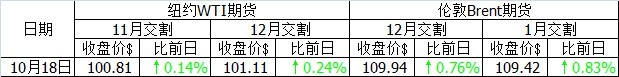 當日中國國家統計局公布了第三季度實際GDP增幅,同比增長7.8%,顯示出經濟回暖的跡象。這促使油價上漲。另外,前一日國際油價大跌,當日上漲也存在抄底買入的因素。但由于市場擔心明年民主共和兩黨可能會就債務上限提高一事再起爭執,因此當日漲幅有限。