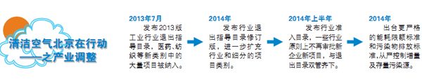 相較之下,北京工業行業準入目錄提出時間較短,市場普遍感覺相對陌生。“為進一步優化產業結構,治理工業污染,北京市將提高產業的準入門檻,制定符合首都功能定位的產業準入指導目錄,凡是不在目錄的產業一律不允許在北京落地建設。”北京市環保局副局長、新聞發言人方力表示。業內評價稱,如果說退出調整指導目錄是為了控制工業行業污染的存量,那么準入目錄的形成就是為了為增量設置一道“防火墻”。