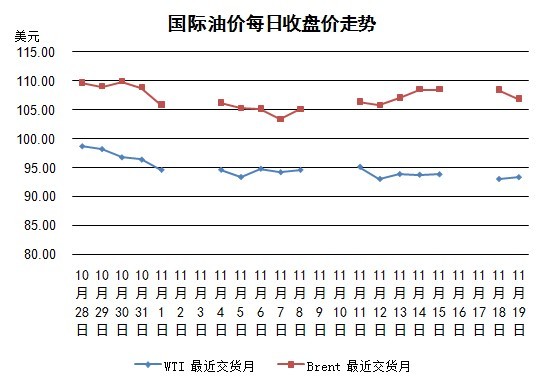當(dāng)日紐約WTI油價微漲。道達(dá)爾在比利時安特衛(wèi)普的煉油廠發(fā)生火災(zāi),該煉油廠為歐洲第二大煉油廠,該消息推升油價上行。11月20日新一輪伊朗核問題談判將開始,另外美國石油庫存周報即將公布,因此市場觀望情緒濃厚,交易量有限。根據(jù)路透社調(diào)查預(yù)測,截至15日的美國原油庫存比前一周增加90萬桶,汽油庫存減少30萬桶,餾分油減少60萬桶。