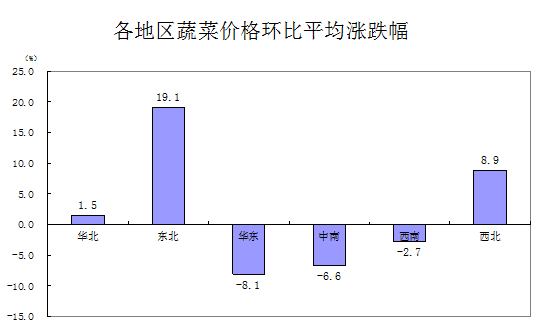 一、11月份,CPI中的具體食品價格環(huán)比漲跌互現(xiàn),但總體略微下降。其中,糧食、牛肉、羊肉、牛奶和水果價格環(huán)比有不同程度的上漲,而豬肉、鮮蛋、蔬菜和水產(chǎn)品價格環(huán)比有所下降。特別需要說明的是,盡管全國蔬菜價格環(huán)比平均下降了3.8%,但地區(qū)間價格變動差異比較大。東北地區(qū)受入冬以來最強降雪影響,西北部分地區(qū)或低溫或多雨,蔬菜價格環(huán)比上漲較多,而華東、中南和西南地區(qū)蔬菜價格環(huán)比則普遍有所下降。