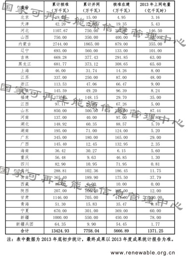 全國2013年度風(fēng)電建設(shè)情況具體見表1和表2。
