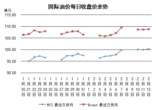 中國海關當日公布的1月原油進口量為單月最高水平,這刺激油價上漲。美國能源信息署當日公布的數據顯示,截至上周的原油庫存比前一周增加330萬桶,超出路透社調查預計的增加270萬桶;汽油庫存減少190萬桶(路透社調查預計減少10萬桶),餾分油減少70萬桶(路透社調查預計減少230萬桶)。原油庫存增加不利于油價上漲,但是俄克拉荷馬州庫欣交易中心(WTI原油的交易地點)的原油庫存位于2013年11月以來的最低水平,市場受到積極影響。但由于當日外匯市場美元走高,油價上漲幅度有限。