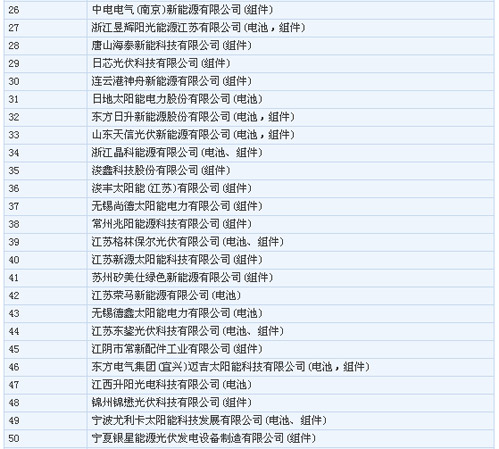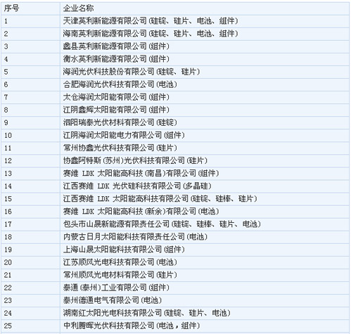 擬公告的符合《光伏制造行業(yè)規(guī)范條件》企業(yè)名單(第二批)