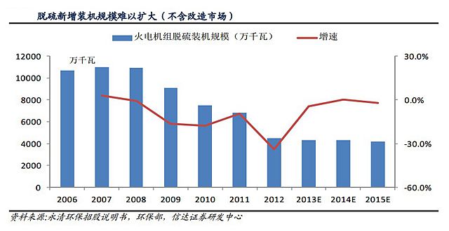 2012年底已投運(yùn)火電廠煙氣脫硝機(jī)組總?cè)萘績(jī)H占當(dāng)時(shí)全國(guó)現(xiàn)役火電機(jī)組容量的28%,而截至2013年底,中國(guó)最大的發(fā)電企業(yè)華能集團(tuán)脫硝機(jī)組占煤電機(jī)組比重也僅為65%。
