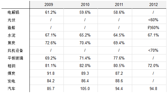 就結構而言,我國部分行業產能嚴重過剩。其中,電解鋁、電石、焦炭、水泥、平板玻璃、粗鋼、風電設備、光伏、造船,產能利用率低于70%,電解鋁、光伏兩個行業可能低于60%。產能利用屬于正常水平的行業有:煤炭、發電,產能利用率高于85%。產能利用狀況最好的行業是汽車,目前產能利用率超過95%。中國產能過剩的總體狀況是:整體情況好于市場傳言,結構問題甚于整體問題。
