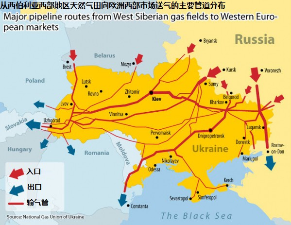 由于俄羅斯天然氣出口歐洲國家的管道要途徑烏克蘭(如下圖所示),因此對烏克蘭停氣其實是在“敲山震虎”,俄羅斯在警告歐洲有關國家,如果制裁進一步加劇,俄羅斯也只好使用這種會帶來實質損害的手段。普京當然不希望俄羅斯真的對烏停氣,他希望的是歐洲乖乖就范,不要再升級目前的對立形勢。這也是為何普京在15日的信中還在呼吁歐洲與俄展開更積極的磋商和對話。