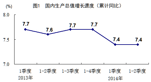 2013年各季度及2014年一、二季度GDP環(huán)比增速分別為1.6%、1.8%、2.3%、1.7%、1.5%、2.0%