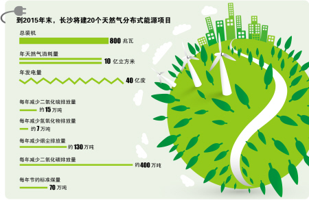據(jù)悉,到2015年末,長(zhǎng)沙將建設(shè)20個(gè)天然氣分布式能源項(xiàng)目,總裝機(jī)達(dá)800兆瓦,年天然氣消耗量10億立方米,年發(fā)電量40億度,可減少二氧化硫年排放量約15萬(wàn)噸,減少氮氧化物年排放量約7萬(wàn)噸,減少煙塵年排放量約130萬(wàn)噸,減少二氧化碳年排放量約400萬(wàn)噸,按一棵樹年吸收18.3公斤二氧化碳來(lái)計(jì)算,相當(dāng)于種樹2億多棵;而與傳統(tǒng)的熱電冷分產(chǎn)比較,每年節(jié)約標(biāo)準(zhǔn)煤量70萬(wàn)噸,如按一節(jié)火車皮限量運(yùn)輸量60噸計(jì)算,則需1.166萬(wàn)節(jié)車皮才能完成運(yùn)輸任務(wù)。