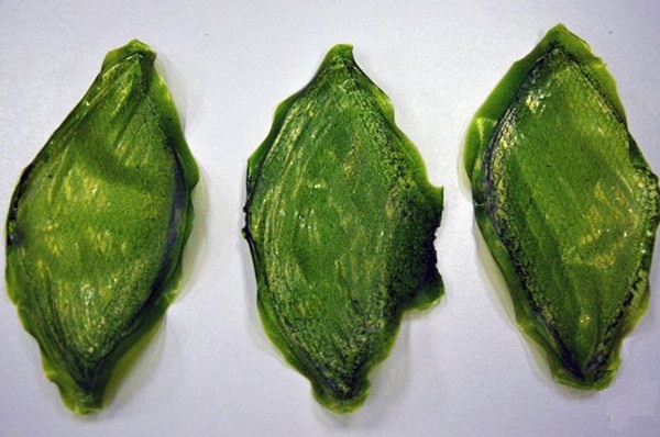 這個研究項目是英國皇家學院藝術創(chuàng)新設計工程課程(與美國塔斯夫大學 Silk 實驗室合作)的一部分。我們可以從圖片里看到,葉綠體在絲蛋白模具里凝固,形成一片清新的綠油油的葉子,這也是 Silk Leaf 的特色之一。僅僅利用一點光源即可讓它釋放出氧氣。并且這種物質(zhì)能夠儲存更多的制氧材料。