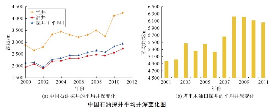 中國石油天然氣股份有限公司(以下簡稱中國石油)的探井平均井深由2000年的2119m增長到2011年的2946m,其中,塔里木油田勘探井深已連續4年超過6000m,且突破了8000m深度關口(克深7井井深8023m);東部盆地勘探井深突破6000m(牛東1井井深6027m)。