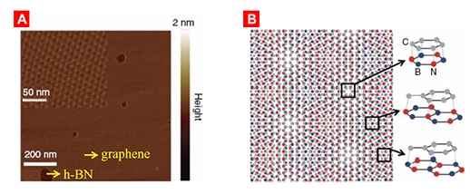 圖1:石墨烯摩爾超晶格結構(A)及示意圖(B)
