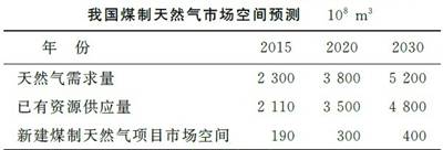 資源供應方面,若不考慮新增進口LNG和管道氣項目,2020年商品氣量為3500×108m3,2030年為4800×108m3。由此判斷,2020年我國新建煤制天然氣項目市場空間大致為300×108m3,2030年大致為400×108m3,見表。
