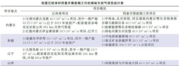 在此政策引導下,2013年9月以來國家對煤制天然氣項目的審批可謂“開閘”,全球最大的煤制天然氣項目(新疆準東年產300×108m3示范項目)取得了發改委的“路條”文件(表)。