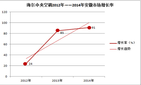 海爾中央空調(diào)2012年——2014年安徽市場增長趨勢(shì)圖